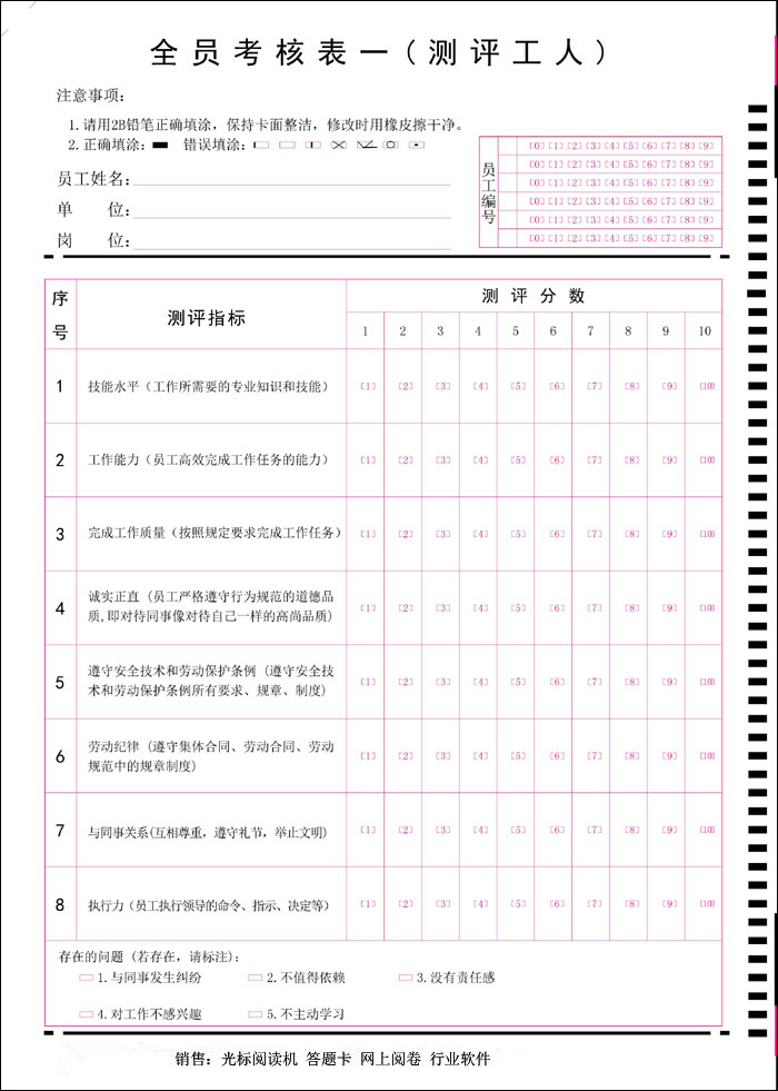 品科光標閱讀機取材上乘,工藝規范,確保精確無誤:對信息卡上的所有被閱讀部分的定位精度要求較高,所以品科答題卡每一張都按照嚴格要求制作。